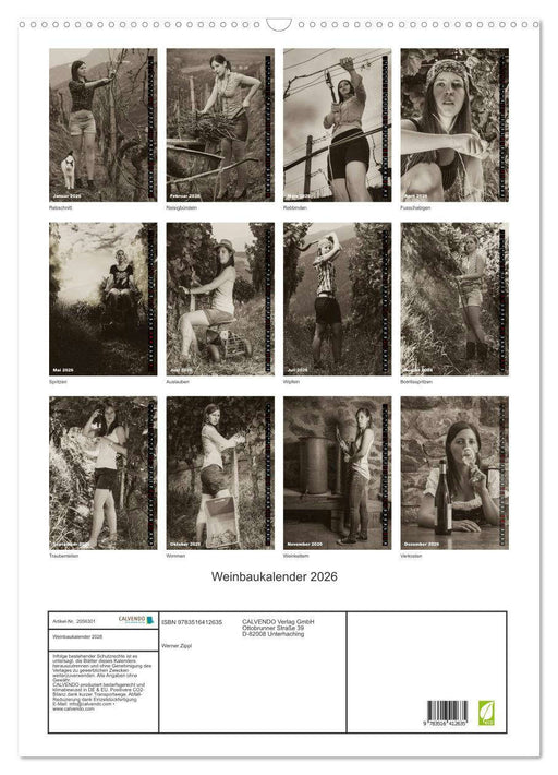Weinbäuerin bei der Arbeit (Monatskalender, 14 Seiten) Der Kalender befasst sich mit den Arbeiten die im Weinanbau zu verrichten sind; vom Rebschn...