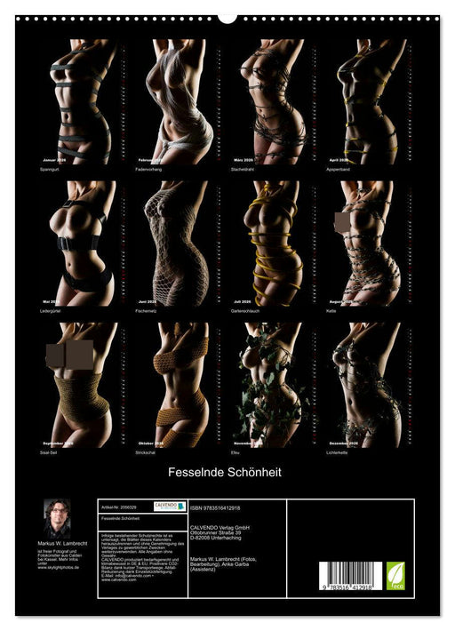 Ein fesselnder Aktkalender der besonderen Art. (Monatskalender, 14 Seiten) Der nackte weibliche Körper; gebunden, gefesselt, geschnürt, umgarnt - ...