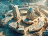 Rätselhafte Zeichen, die in die Steine gemeißelt sind.