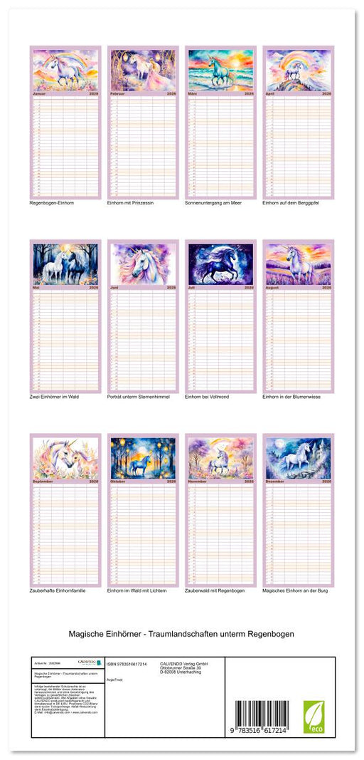 Afficher tous les détailsMagische Einhörner - Traumlandschaften unterm Regenbogen (CALVENDO Familienplaner 2026)