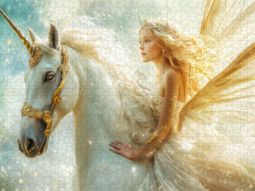 Eine Fee mit einem Einhorn Lass dich von unseren KI-generierten Feen verzaubern, die die Schönheit und Anmut dieser mystischen Wesen einfangen. Di...