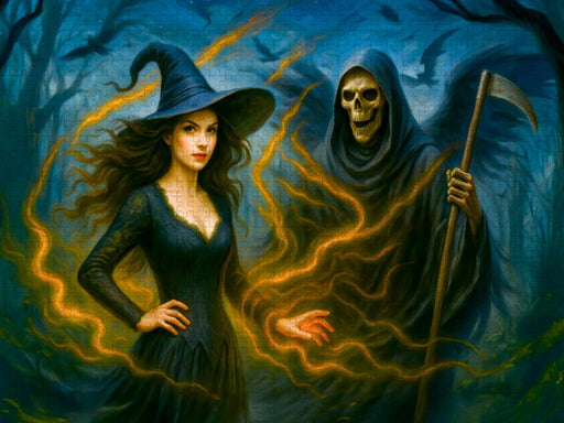 Afficher tous les détailsKräuterhexe mit Gevatter Tod - CALVENDO Foto-Puzzle'