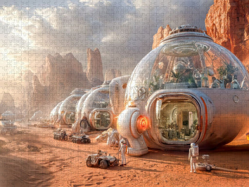 Mars-Kolonie Erkunden Sie unsere von der KI erstellten Kunstwerke, die Ihnen einen Einblick in zukünftige Welten mit fremden Völkern geben. Myster...