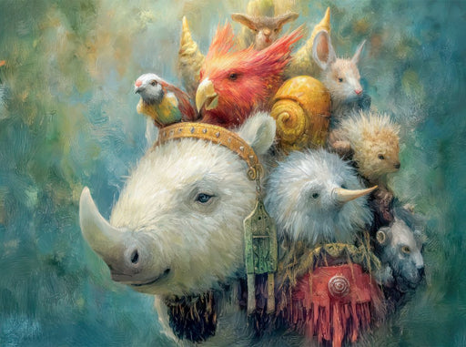 Schwer beladen Entdecke unsere humorvollen und fantasievollen Tieransammlungen. In diesen KI-generierten Kunstwerken vereinen sich echte Tiere und...