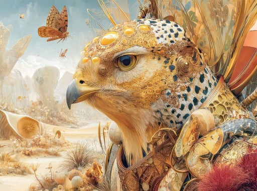 Un joli oiseau Tauchen Sie ein in eine faszinierende Welt, in der vertraute Tiere in einem surrealen und opulenten Garten Eden zum Leben erweckt w...