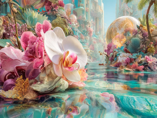 Landschaft mit Orchidee Entdecke die zauberhafte Welt der Fantasie mit unseren einzigartigen KI-generierten Kunstwerken. Lass dich von den weichen...