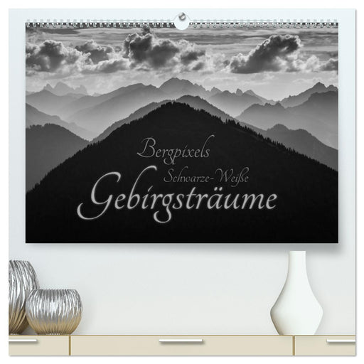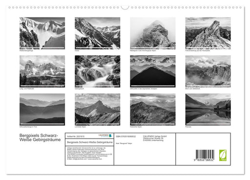 Afficher tous les détailsBergpixels Schwarz-Weiße Gebirgsträume (CALVENDO Premium Wandkalender 2026)