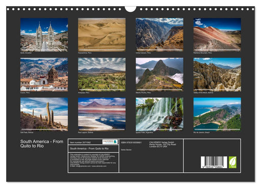 Hightlights of a continent (Monthly calendar, 14 pages) From Quito to Rio the traveler encounters wonderful nature, historical sites and warm peop...
