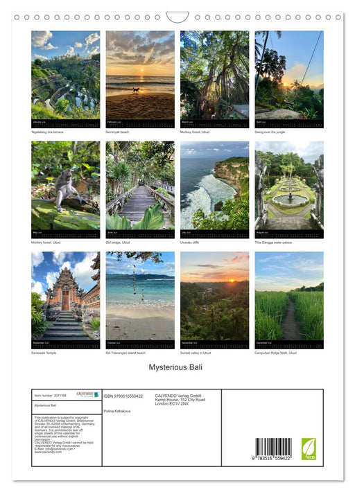 Afficher tous les détailsMysterious Bali (CALVENDO Monthly Calendar 2026)