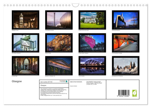 12 scenes of Glasgow depicted in pencil by Graeme Heddle (Monthly calendar, 14 pages) 12 scenes of Glasgow, Scotland's biggest city. Each scene is...