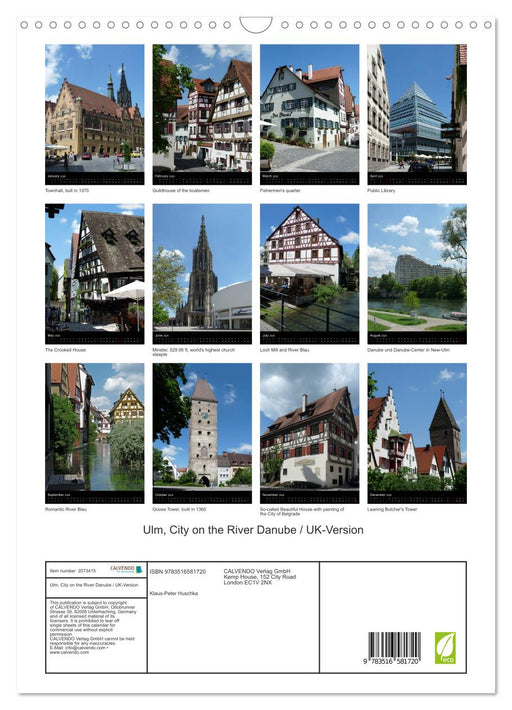 12 places to visit in Ulm (Monthly calendar, 14 pages) A premium-quality calendar with unique images of the old imperial city of Ulm. This decorat...