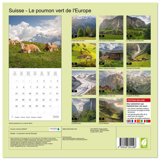 Afficher tous les détailsSuisse - Le poumon vert de l'Europe (CALVENDO Calendrier mensuel 2026)