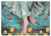 Juli: Schwebend schreitende Füße eines historischen Engels, Friedhof Stubenrauchstraße, Berlin, künstlerisch coloriert
