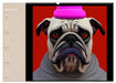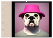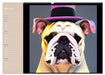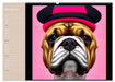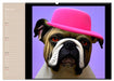 Lustige Portraits von Bulldoggen mit Hut und bunten Farben.