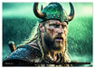 Oktober: Grimmiger Wikingerkrieger mit gehörntem Helm
