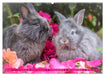 Juli: Niedliche Zwergkaninchen auf Rosenblättern
