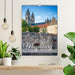 April: Dombrunnen am Breiten Weg (Im Hintergrund der Magdeburger Dom)