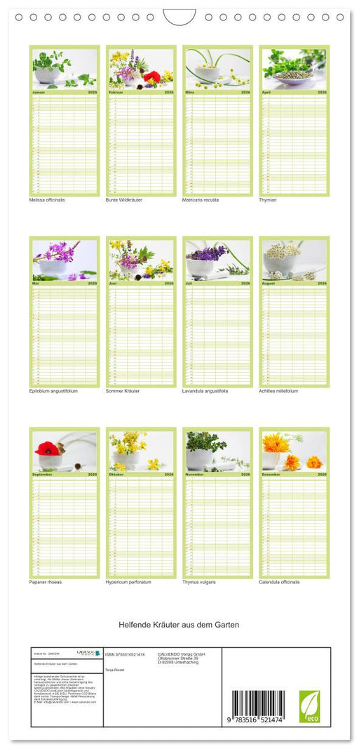Afficher tous les détailsHelfende Kräuter aus dem Garten (CALVENDO Familienplaner 2026)
