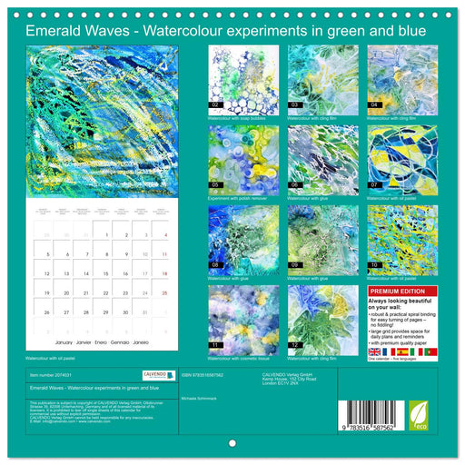 Experimental watercolour painting in shades of green and blue (Monthly calendar, 14 pages) This calendar takes you into the fascinating green and ...