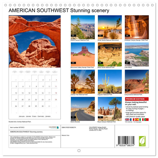 Enjoy picturesque landscape impressions (Monthly calendar, 14 pages) Discover the awe-inspiring beauty of the American Southwest, where dramatic l...