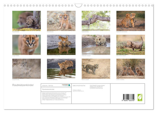 Afficher tous les détailsRaubkatzenkinder (CALVENDO Wandkalender 2026)