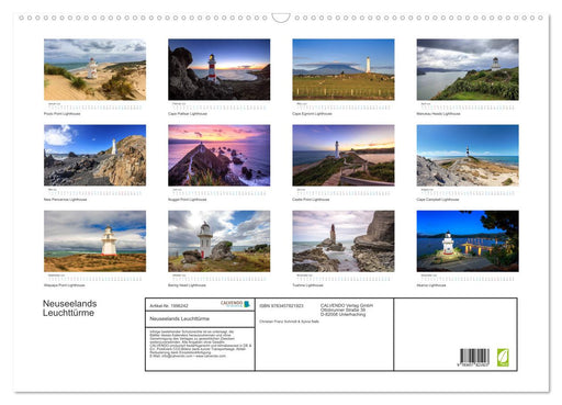 Die schönsten Leuchttürme entlang der neuseeländischen Küste. (Monatskalender, 14 Seiten) Entlang der 15134km langen Küstenlinie Neuseelands stehe...