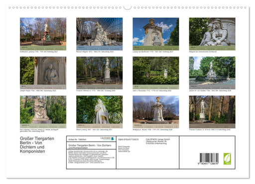 Berlin ehrt große Künstler im Tiergarten (Monatskalender, 14 Seiten) Der Tiergarten in Berlin erzählt auch von Dichtern und Komponisten des 18. un...