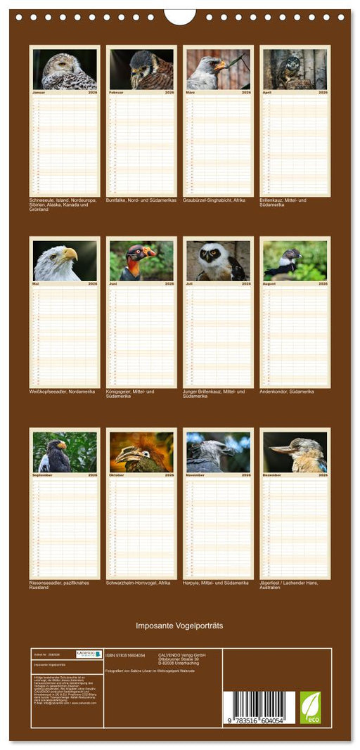 Afficher tous les détailsImposante Vogelporträts (CALVENDO Familienplaner 2026)