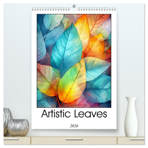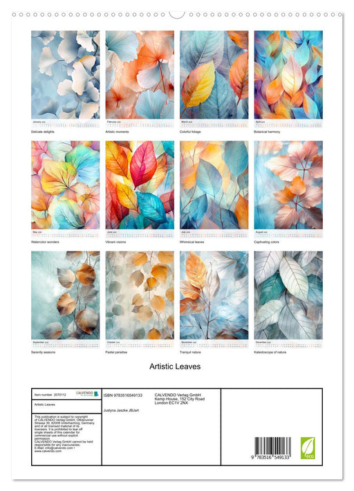 Discover the mesmerizing beauty of Artistic Leaves, showcasing pastel and watercolor foliage, vibrant yet softly subdued. (Monthly calendar, 14 pa...