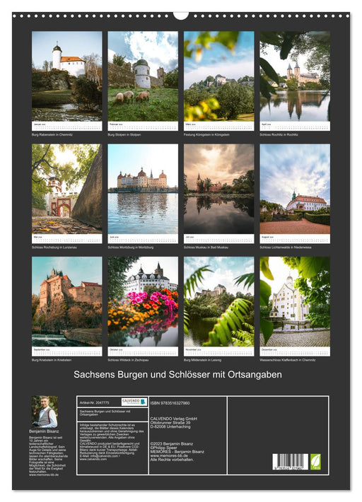 Entdecke die schönsten Burgen und Schlösser Sachsens mit Ortsangaben. (Monatskalender, 14 Seiten) Der Kalender von Benjamin Bisanz enthält wunders...