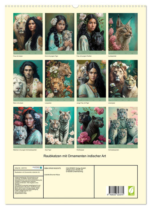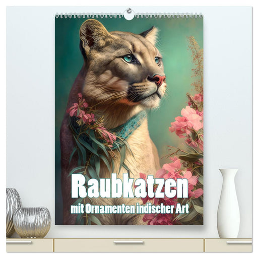 Raubkatzen mit Ornamenten indischer Art (CALVENDO Premium Wandkalender 2026)