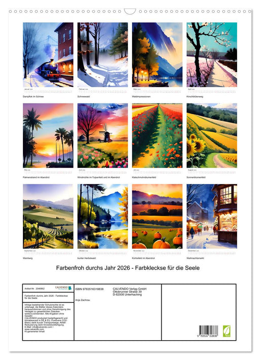 Afficher tous les détailsFarbenfroh durchs Jahr 2026 - Farbkleckse für die Seele (CALVENDO Wandkalender 2026)