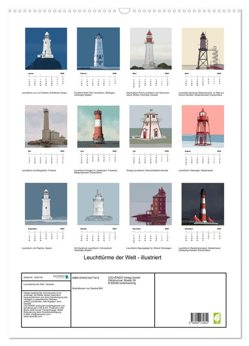 Leuchttürme der Welt - illustriert (CALVENDO Wandkalender 2026)