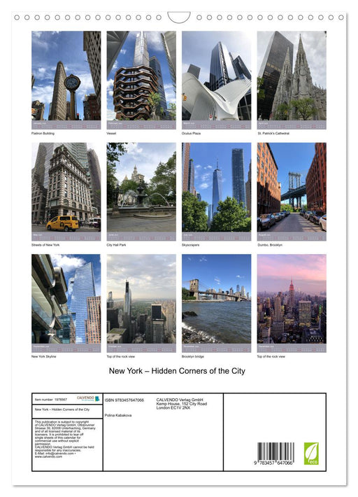 Afficher tous les détailsNew York – Hidden Corners of the City (CALVENDO Monthly Calendar 2026)