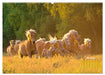 Juni: Haflinger-Herde mit Fohlen galoppieren im warmen Abendlicht