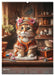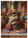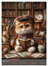 April: Ein künstlerisches Kätzchen in einer Bibliothek beim lesen eines Buches