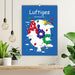 Zwölf lustige Bildmotive des Abc dargestellt durch schwebende Ballons, die unterhaltsam und dekorativ sind. Eingebettet in jahreszeitliche Kunstillustrationen.
