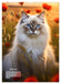 Juni: Ragdoll sitzt in einem Feld zwischen roten Mohnblumen