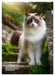 Juli: Ragdoll steht auf einer Steintreffe in einer schönen Lichtstimmung