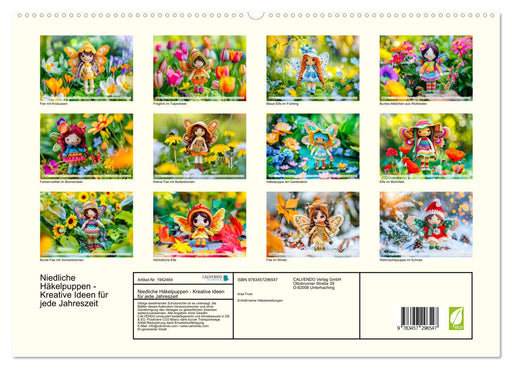Zauberhafte Puppen mit Flügeln, passend zur Jahreszeit, umgeben von blühenden Gärten (Monatskalender, 14 Seiten) Der Kalender "Niedliche Häkelpupp...