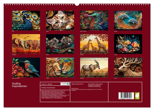 Afficher tous les détailsTierwelt mit Quilling (CALVENDO Wandkalender 2026)