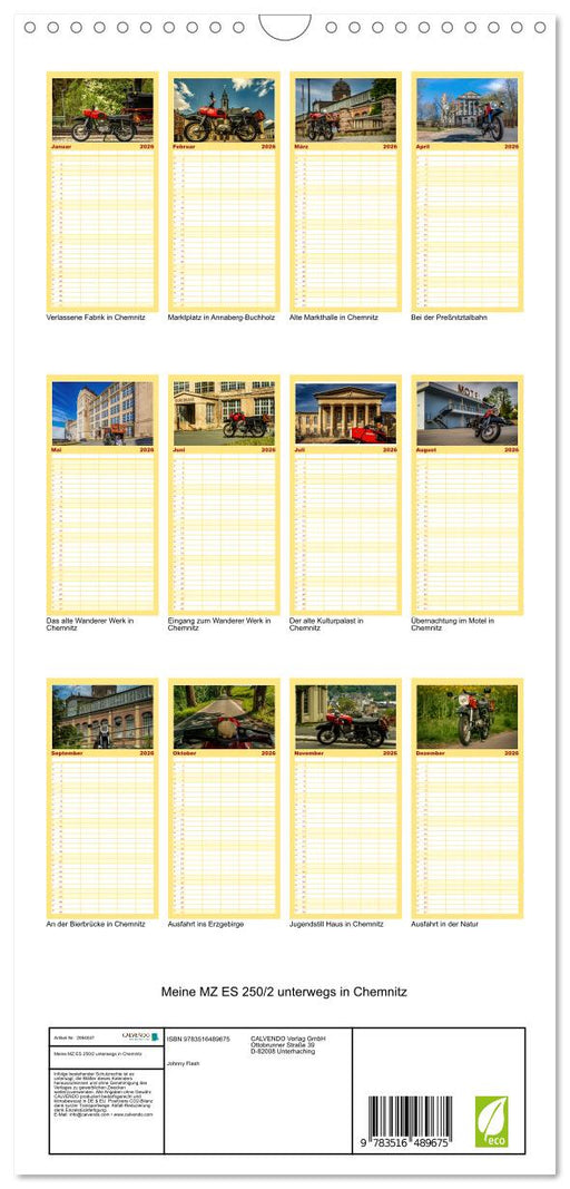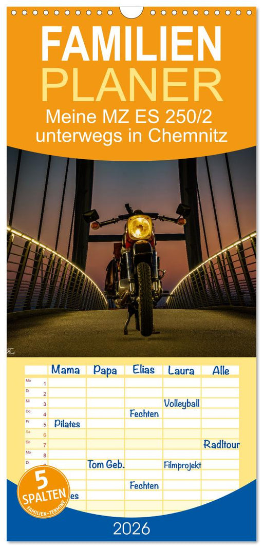 Afficher tous les détailsMeine MZ ES 250/2 unterwegs in Chemnitz (CALVENDO Familienplaner 2026)