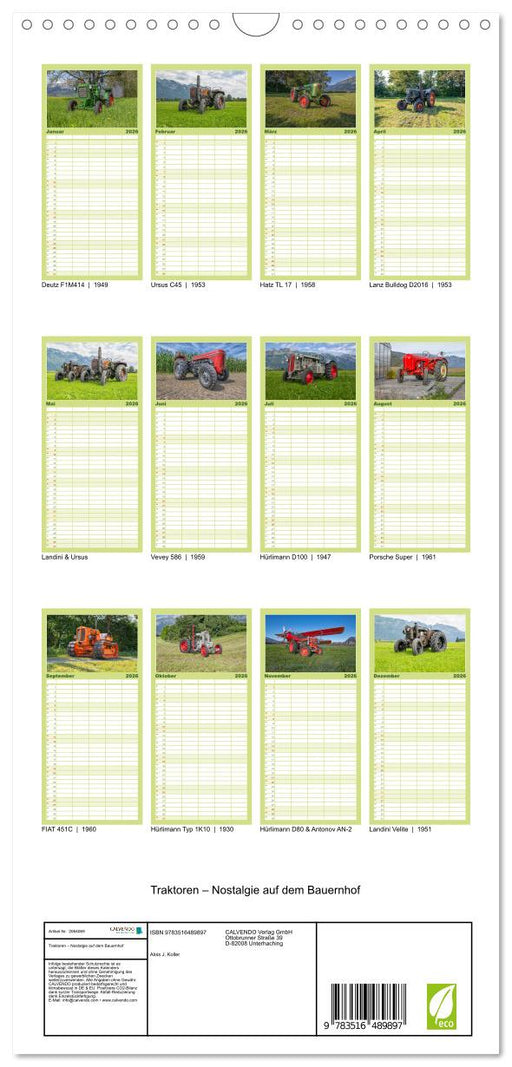 Afficher tous les détailsTraktoren – Nostalgie auf dem Bauernhof (CALVENDO Familienplaner 2026)