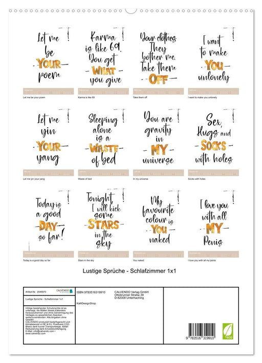 Lustige Sprüche - Schlafzimmer 1x1 (CALVENDO Premium Wandkalender 2026)
