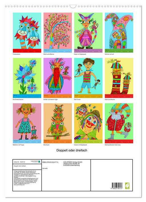 Lustige Figuren im Doppel- oder Dreifachpack (Monatskalender, 14 Seiten) Naive Malerei lustig und kunterbunt. Alle Figuren und Gegenstände gleich ...