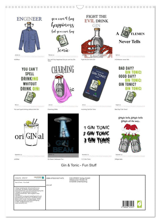 Eine Sammlung witziger Grafiken rund um unser alkoholisches Lieblingsgetränk: GIN & TONIC (Monatskalender, 14 Seiten) Eine Sammlung witziger G...