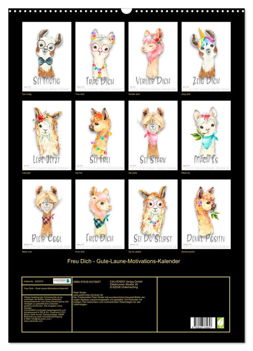 Farbenfrohe Bilder der niedlichen Alpakas, humoriger Motivationsschub für jeden Monat. (Monatskalender, 14 Seiten) Der Fotokünstler Peter Roder ha...