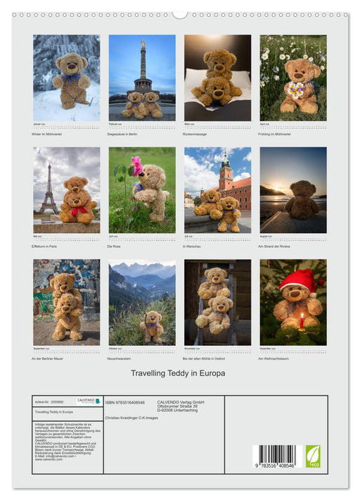 Afficher tous les détailsTravelling Teddy in Europa (CALVENDO Premium Wandkalender 2026)