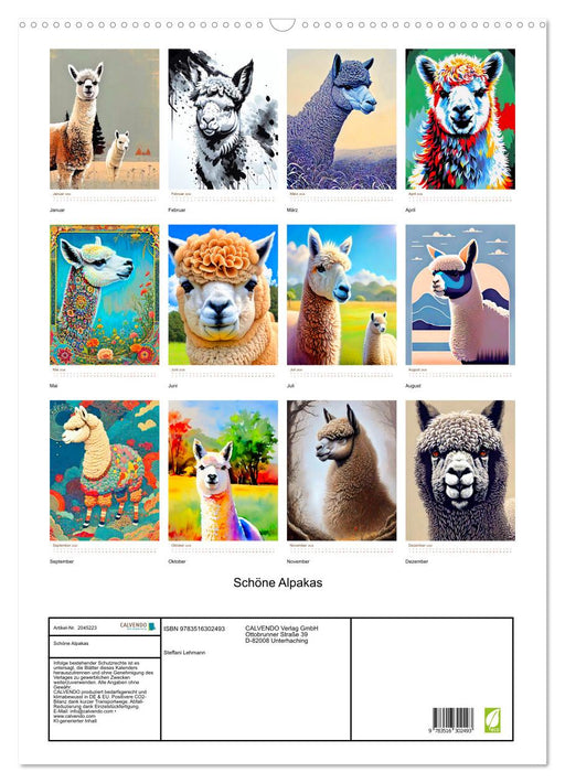 Sanfte Alpakas in verschiedenen Kunststilen (Monatskalender, 14 Seiten) Alpakas sind bekannt für ihre sanftmütige Natur. Sie sind scheu, weswegen ...