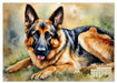 Rund um den Globus ist der Deutsche Schäferhund eine der beliebtesten Hunderassen. Er hat alles, was ein professioneller Arbeitshund braucht. Durch seine Intelligenz ist er ein lernwilliger, aufmerksamer, nervenstarker und selbstsicherer Hund. Aus diesem Grund eignet er sich optimal als Schutz- Arbeits- und Begleithund. Mithilfe der KI sind hier wundervolle Aquarelle dieses prächtigen Hundes entstanden.